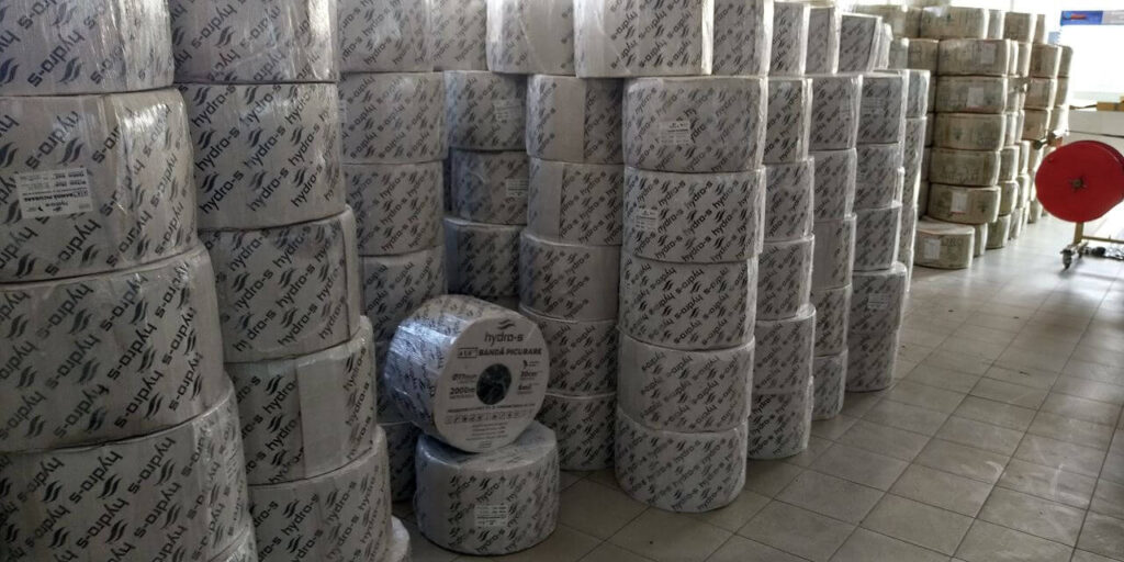Diametrul benzii de picurare este 16 mm, iar distanța între orificiile de picurare este de la 10 cm.